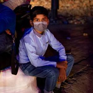 4月28日晚,人們在尼泊爾首都加德滿都的路邊等車,準備在封禁措施實施前離開加德滿都返回家鄉(xiāng)。
