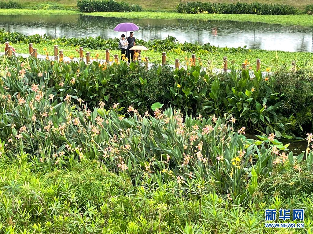 立夏時節(jié),廣西南寧市那考河濕地公園內草木吐翠、鮮花斗艷,一派繁茂景象。