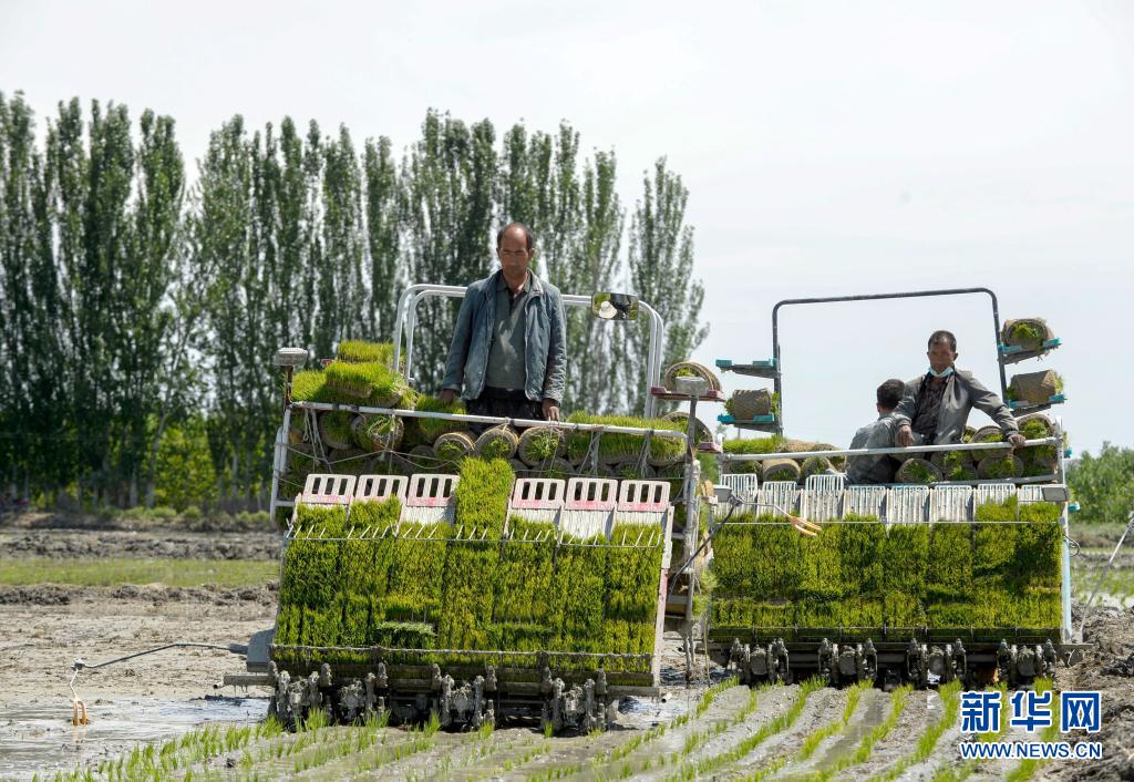 進入5月,新疆溫宿縣的11萬余畝水稻進入插秧期。稻田間,插秧機往來穿梭,一片繁忙景象。
