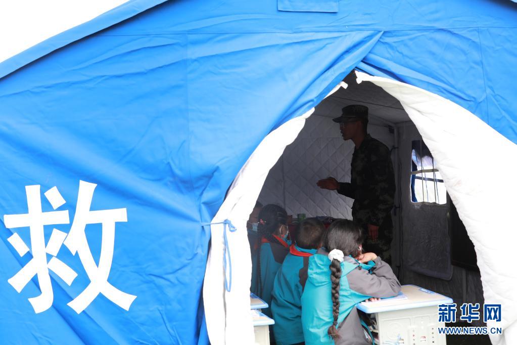 5月24日,武警青海總隊(duì)果洛支隊(duì)機(jī)動(dòng)大隊(duì)排長張國睿為花石峽鎮(zhèn)藏文中心寄宿制小學(xué)的孩子上課。新華社記者 劉芳 攝
