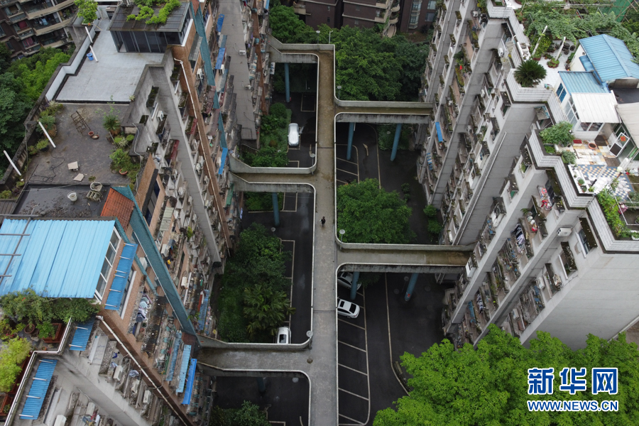 天橋在空中穿行,可方便居民出入。新華網 耿駿宇 攝