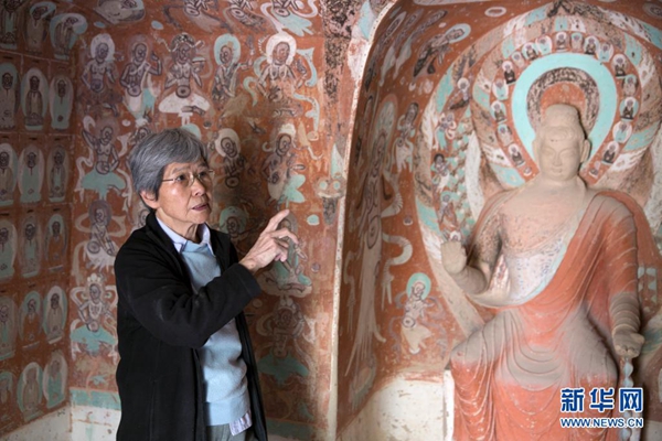 她是敦煌研究院名譽院長樊錦詩。1938年,祖籍杭州的樊錦詩出生在北京,自1963年大學畢業后,她便開始了與莫高窟長達半個多世紀的相守。在她和同事的努力下,莫高窟在1987年成為中國首批進入世界文化遺產名錄的遺產地,并逐步成為世界文化遺產保護和利用的全球典范。