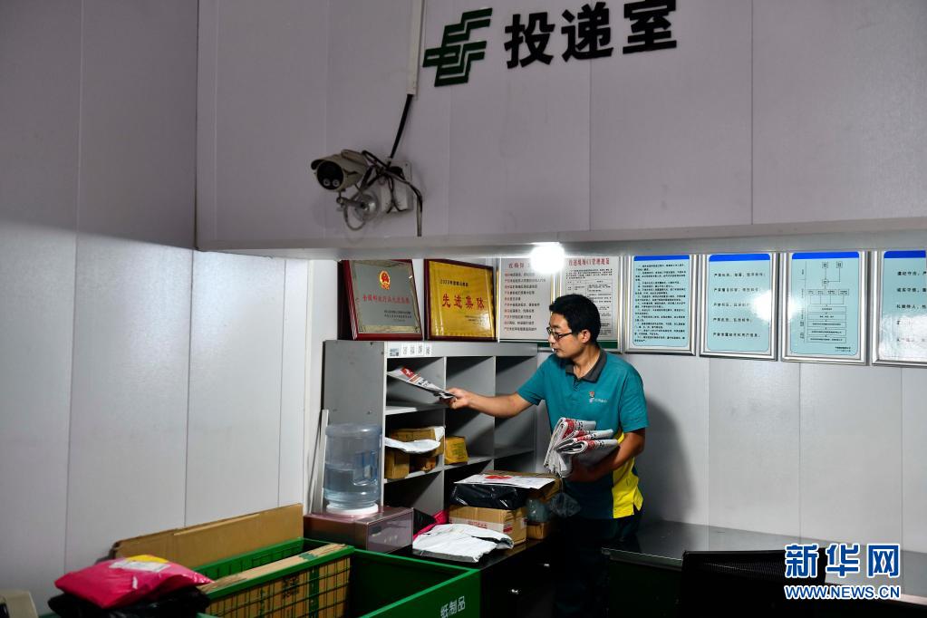 6月20日,在微山縣南陽鎮,郵遞員王少朋在分揀郵件。