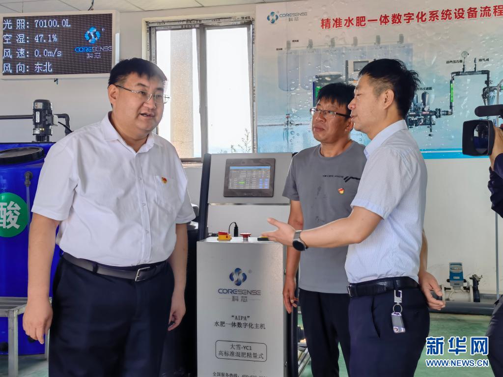 6月23日,劉偉(左一)在太谷區閆村科芯園區水肥一體化車間調研。新華社發