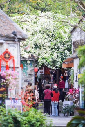 南国春早,万物生发。今年3月,深圳市龙岗区甘坑古镇迎来一年一度与深圳市花三角梅的浪漫之约。在华侨城集团统筹推动文旅融合发展的战略部署下,华侨城旅发公司“甘坑古镇三角梅文化创意节”于3月8日正式启幕,活动将持续至4月19日,覆盖整个春季赏花期。