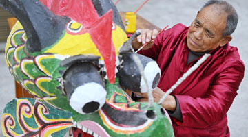 2月18日,人们在贵州省龙里县民俗踩街活动中舞龙。
