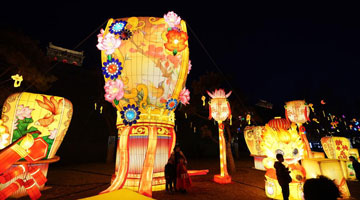 2月18日,人们在贵州省龙里县民俗踩街活动中表演太平花灯戏。