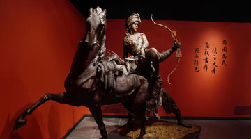 这是3月12日在香港文化博物馆拍摄的由雕塑家任哲创作的金庸武侠人物雕塑。新华社记者 王申 摄