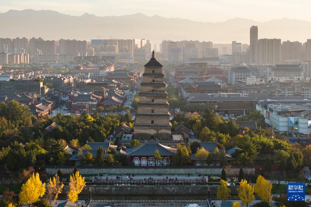西安大雁塔景色(2023年11月17日摄,无人机照片)。