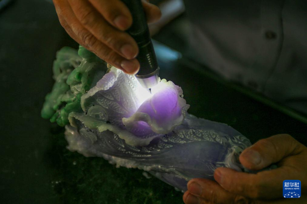 张铁成在检测玉质(6月15日摄)。