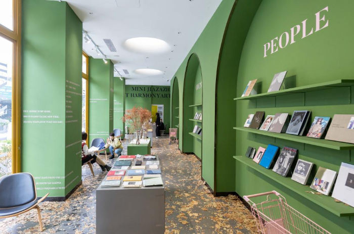 11月19日,人们在上海市徐汇区西岸艺术中心附近一家书店内阅读拍照。