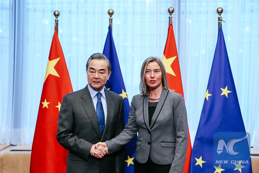 Wang is in Brussels, where he co-chaired the ninth round of the China-EU High-level Strategic Dialogue with Mogherini early Monday.
