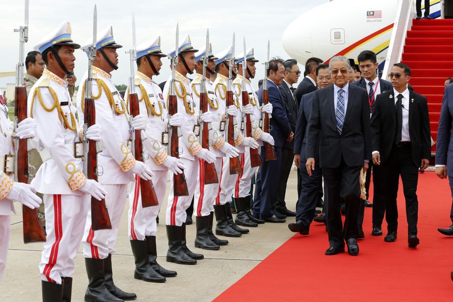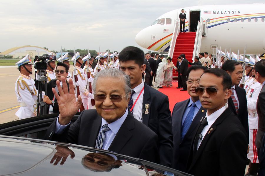 Malaysian Prime Minister Mahathir Mohamad arrives in Phnom Penh for a three-day official visit to Cambodia Sept. 2, 2019. (Xinhua/Sovannara)