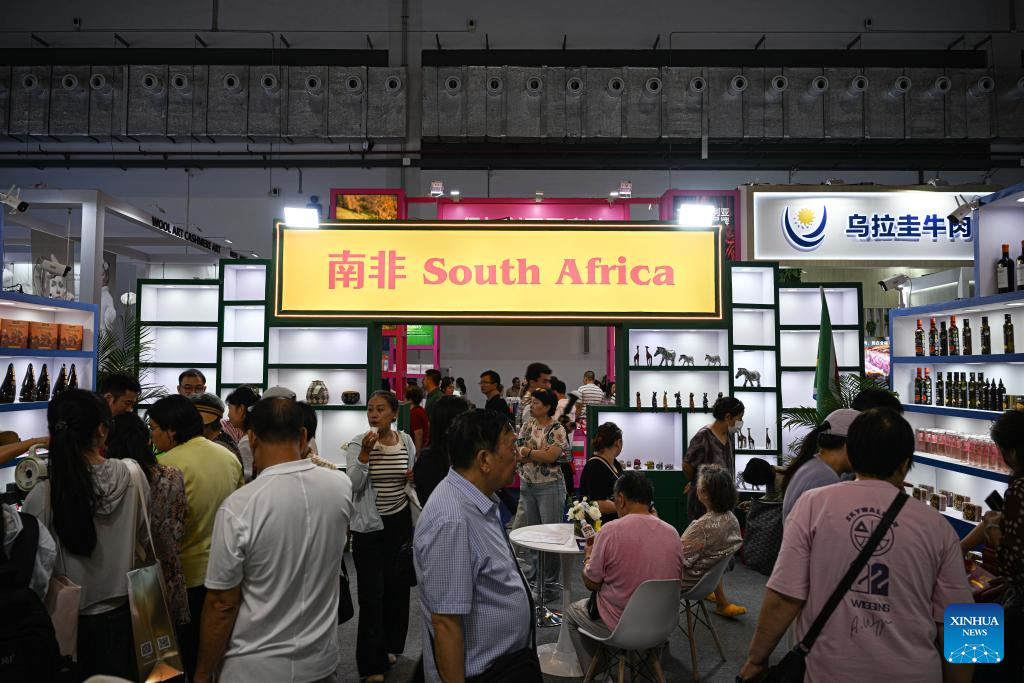 People visit the pavilion of South Africa during the sixth China International Consumer Products Expo (CICPE) in Haikou, south China's Hainan Province, April 16, 2026. The sixth CICPE, open to the public from Thursday to Saturday, has attracted a large number of local residents and tourists. (Xinhua/Pu Xiaoxu)