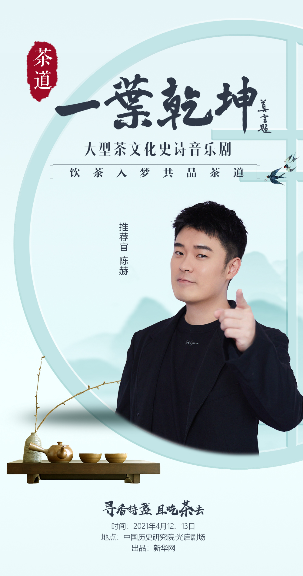 一茶一世界,一葉一乾坤。由新華網(wǎng)出品的大型茶文化史詩音樂劇《茶道:一葉乾坤》將于2021年4月12日-13日在中國歷史研究院光啟劇場隆重上演。《茶道:一葉乾坤》推薦官陳赫向您發(fā)出邀請,邀您共賞葉中乾坤,以茶會友,共品茶道。