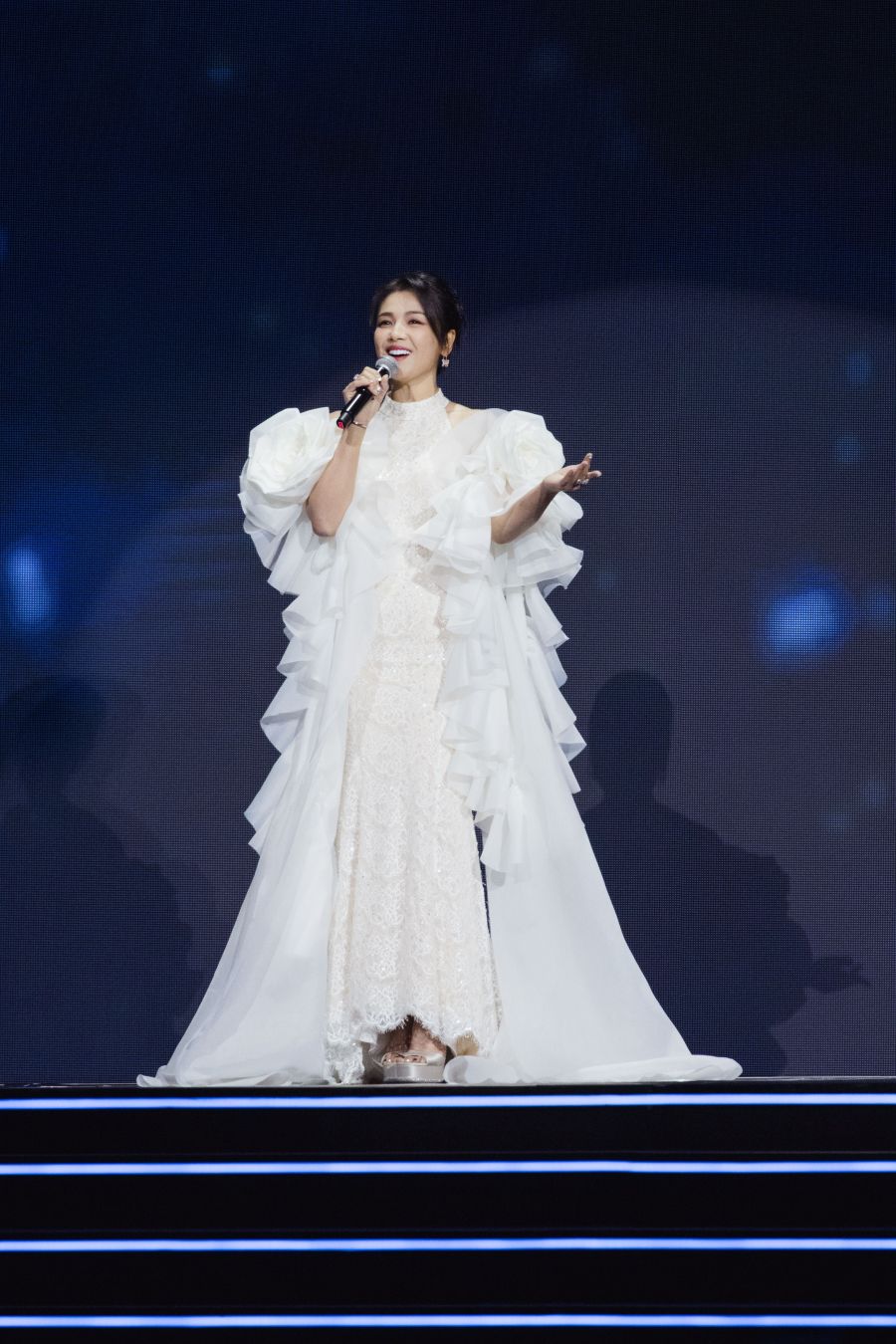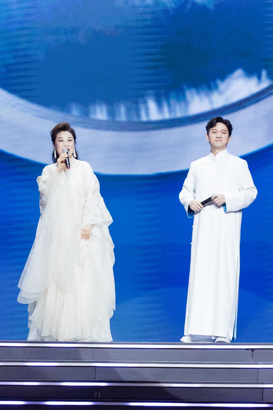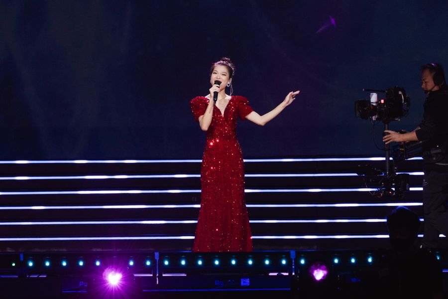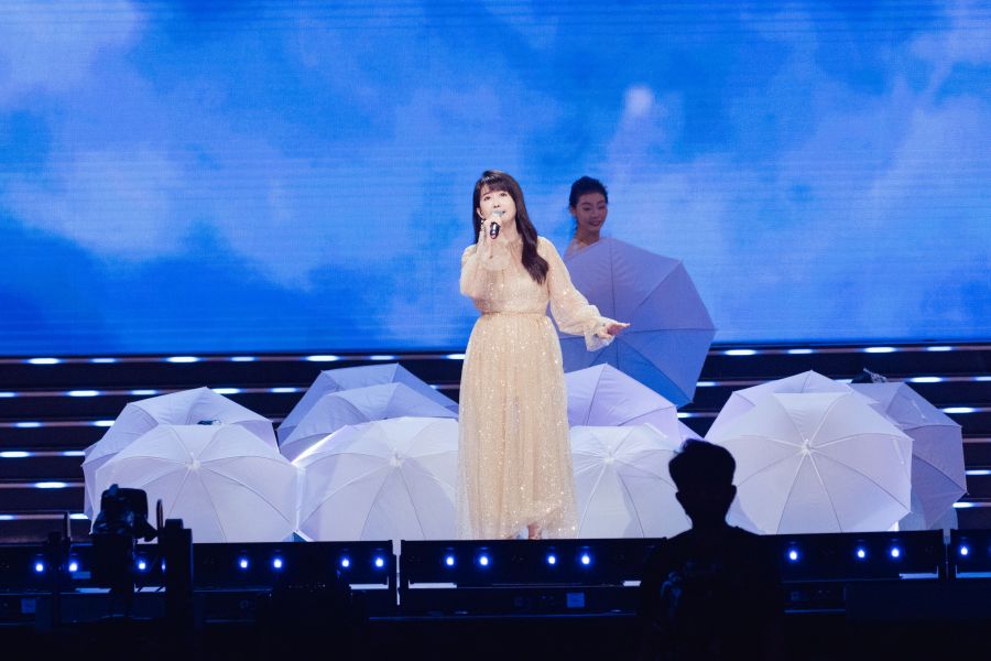 “把心交给你,将未来轻轻捧起,我的祖国,我的姐妹兄弟。”吕薇演唱《把心交给你》,歌声嘹亮高亢,饱含着对祖国的深情。