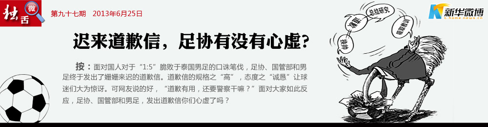 央視也不能忍了 “這樣的檢查沒有觸及靈魂,應該打回去重寫。”——央視評足協道歉。足協、國管、國足上演道歉信帽子戲法,怎么看怎么像兒戲,別說觸及靈魂了,純屬耍嘴皮子。