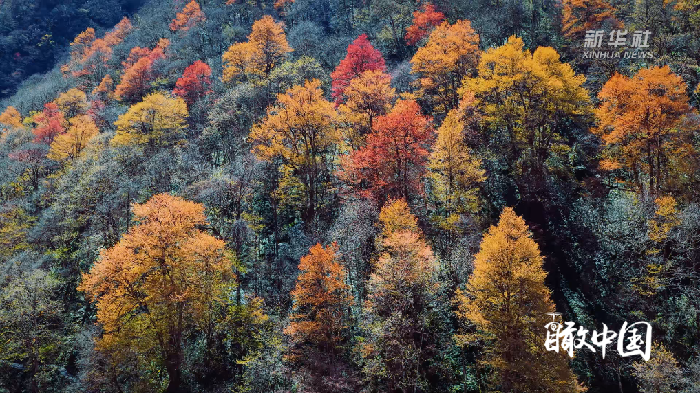 春和景明,位于四川省雅安市的东拉山大峡谷,连香树新芽绽出橙红、嫩黄,与新绿交织,十里彩林层叠如画,宛若打翻调色盘。