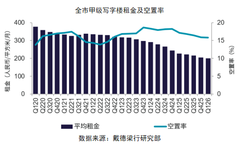 戴德梁行北区首席政策分析专家、研究部主管魏东表示,2025年全年及2026年第一季度,北京写字楼市场持续无新增供应,市场以存量去化为主,空置水平保持平稳,租金降幅不断收窄。在政策支持下,新兴产业成为租赁需求的核心增长极,其中生物医药类企业表现尤为活跃。他预计,2026年下半年北京写字楼市场将迎来约130万平方米的新增供应,届时市场可能面临一定的去化压力。