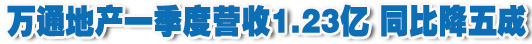 地產“淡定哥”一季度不再淡定,凈利潤出現虧損1860萬元。對于住宅項目主要以中高端為主的萬通地產而言,2012年的壓力依然很大。據了解,萬通目前在內地的住宅產品主要位于北京及周邊地區、天津、成都等地,均是中高端產品,是調控的“重災區”。如去年年中開盤的萬通天竺家園就被迫限價,影響了預期利潤。而臺北萬通項目尚未形成利潤。 …[詳細]