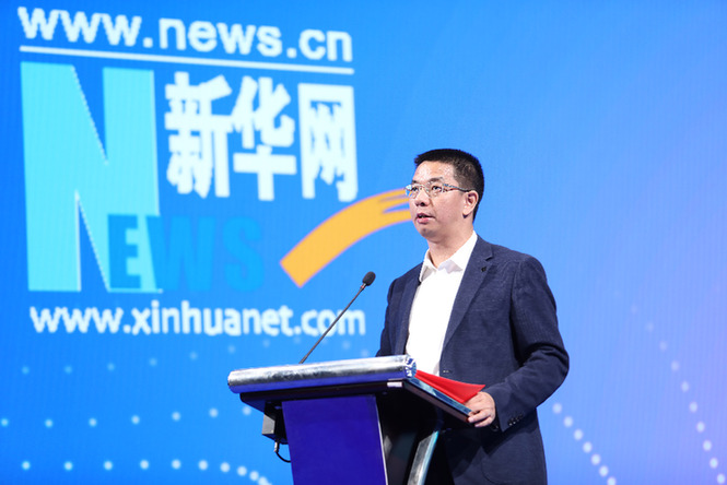 5月27日,巴彥淖爾市人民政府與新華網戰略合作簽約儀式在京舉行。圖為新華網黨委常委、副總裁申江嬰致辭。新華網 張 斌 攝