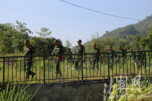 ????6月3日,云南邊防總隊天保邊防檢查站與越南清水國際口岸邊防屯在中越陸地邊界地段舉行徒步聯合巡邏。
