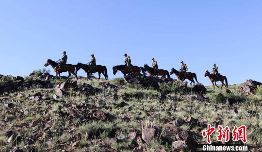6月15日,阿勒泰邊防支隊吉木乃大隊官兵與護邊員赴邊境區域護邊巡查。 王友波 攝