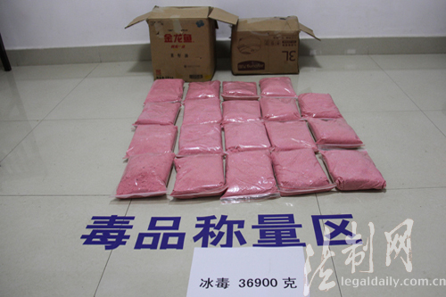????為嚴厲打擊毒品違法犯罪活動,這個支隊大開河邊境檢查站,及時調整警力部署,增大設伏堵卡查緝范圍和時段。當日零時45分許,執勤官兵在中緬邊境打洛鎮某便道開展設伏堵卡時,有一束摩托車光源從邊境便道徐徐向執勤官兵設伏臨時查緝區域駛來,當摩托車光源在距離執勤卡點約有25米時,摩托車上的駕駛員看到執勤官兵后突然停止不前,執勤官兵遂上前詢問,不料駕駛員掉頭便往邊境方向逃竄,執勤官兵果斷登車追擊,因天黑光線不足,加之雨天路滑,執勤官兵追擊未果。隨后,執勤官兵對摩托車駕駛員丟棄在路邊草叢里的兩個黃色紙箱進行檢查,當場從紙箱內查獲粉末狀冰毒9袋,從另一紙箱內查獲粉末狀冰毒10袋,后經稱量共計36.9公斤。