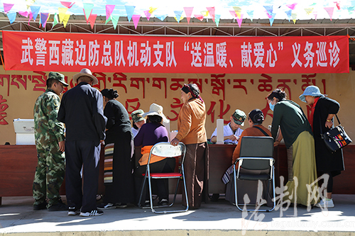 圖為西藏公安邊防總隊機動支隊醫師正在社區義務巡診