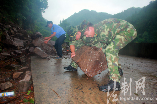 ????原標題:進鎮盤山要道落石中斷 福建鑒江邊防官兵放棄軍人節日冒雨搶通