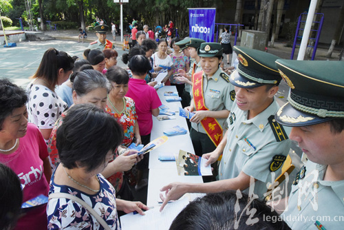 ????為密切警地聯系,展現國門良好形象,8月8日, 廣西邊防總隊南寧邊檢站的官兵們走進駐地社區,開展 “平安國門·天天伴你”的服務品牌宣傳活動。