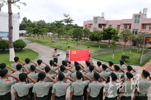 ????8月28日上午,廣西邊防總隊北海邊防支隊機動大隊42名臨退老兵面對黨旗再一次重溫入伍誓詞,感悟軍人的忠誠與責任、邊防戰(zhàn)士的自豪與驕傲。