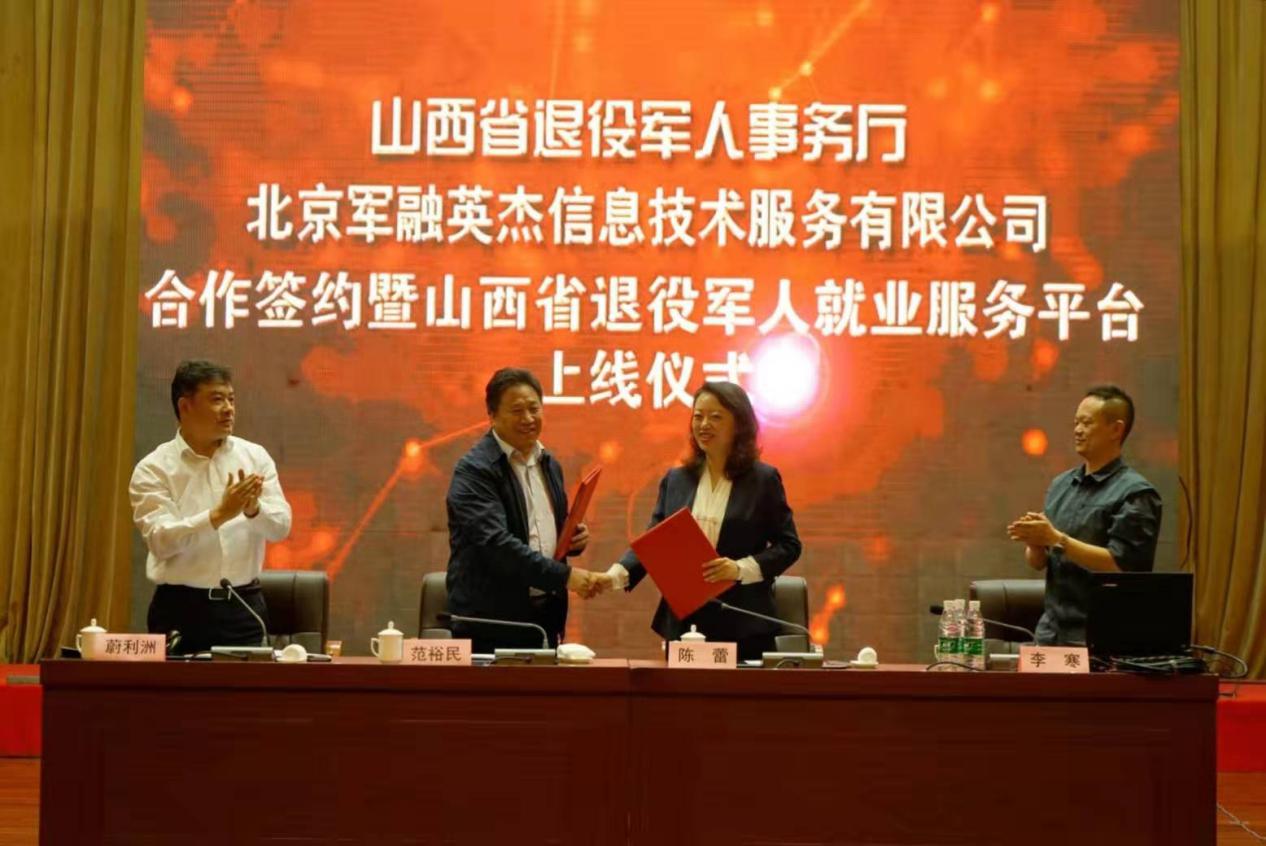 ????山西省退役軍人事務廳與北京軍融英杰信息技術服務有限公司25日在忻州簽署合作協議,正式推出山西省退役軍人就業創業服務平臺。這是山西省積極探索借助社會力量為退役軍人就業創業服務的又一舉措。