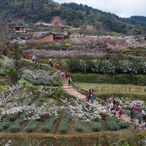 初春時節,四川省丹棱縣順龍鄉幸福古村春意盎然,百花齊放,吸引各地游客前來踏青休閑。