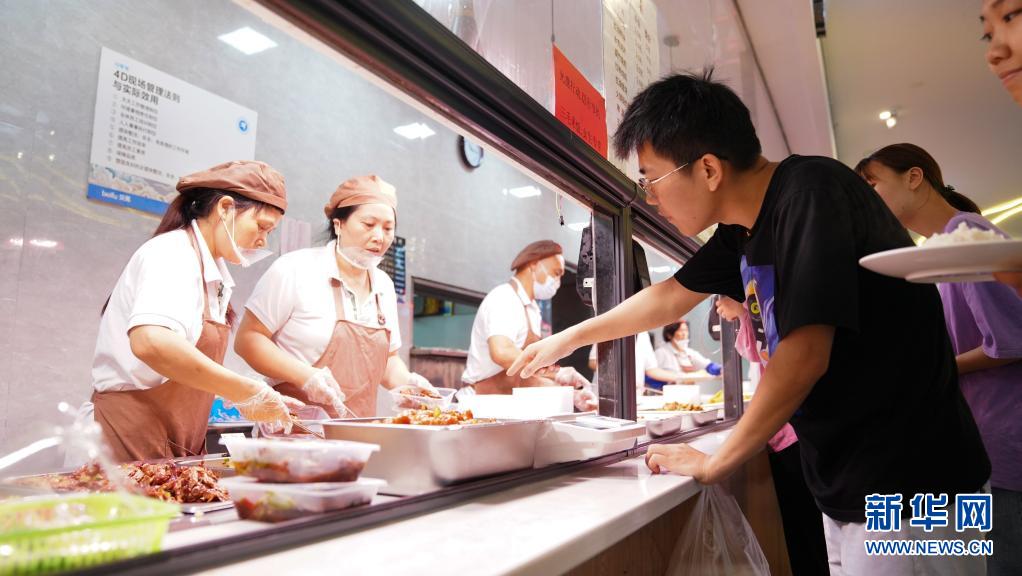 6月1日,趙建軍在學校食堂內為母親打飯。新華社記者胡晨歡攝