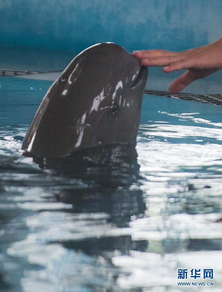 7月5日,中科院水生所白鱀豚館飼養(yǎng)員對長江江豚進行訓練。新華社記者肖藝九攝
