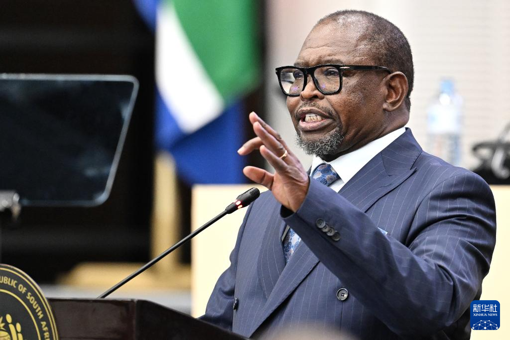 这是2月25日南非财政部长埃诺赫·戈东瓜纳在开普敦向南非议会提交2026年预算案并发表讲话的资料照片。
