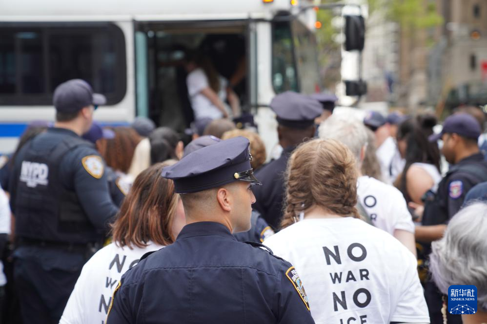 4月13日,民众在美国纽约曼哈顿举行反对战争、声援巴勒斯坦,以及反对美国移民与海关执法局驱逐移民的抗议活动。