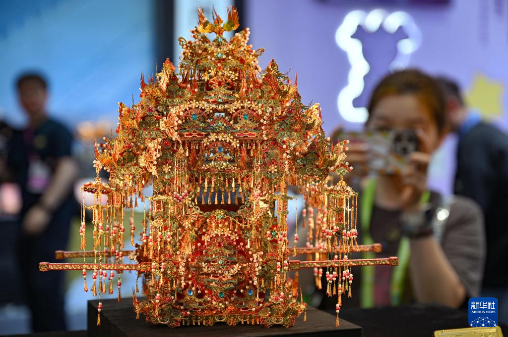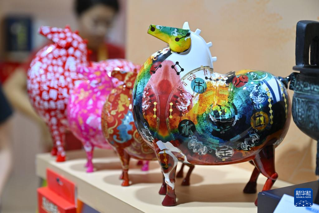 4月15日在第六届消博会上拍摄的国风创意摆件。