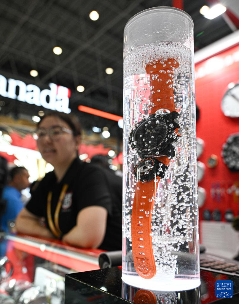 4月16日在第六届消博会瑞士展台拍摄的手表。