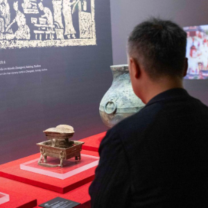 4月17日,参观者在汉代文物精品展上参观。