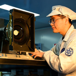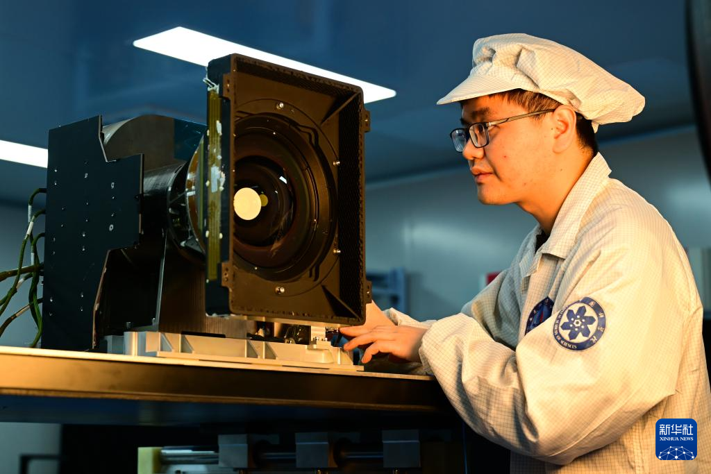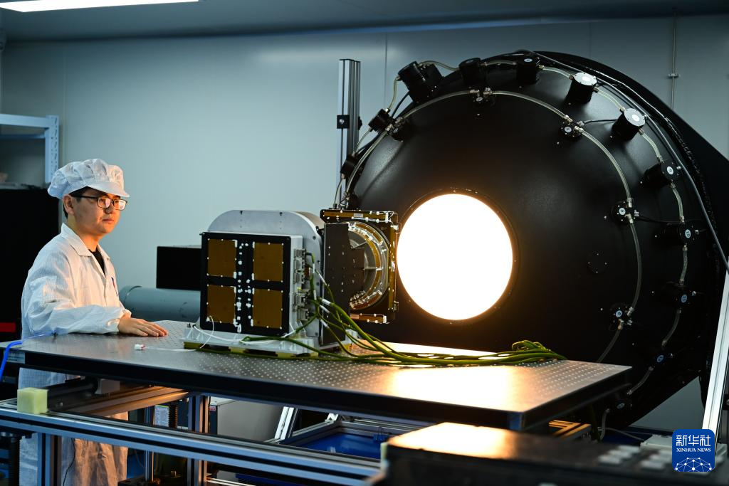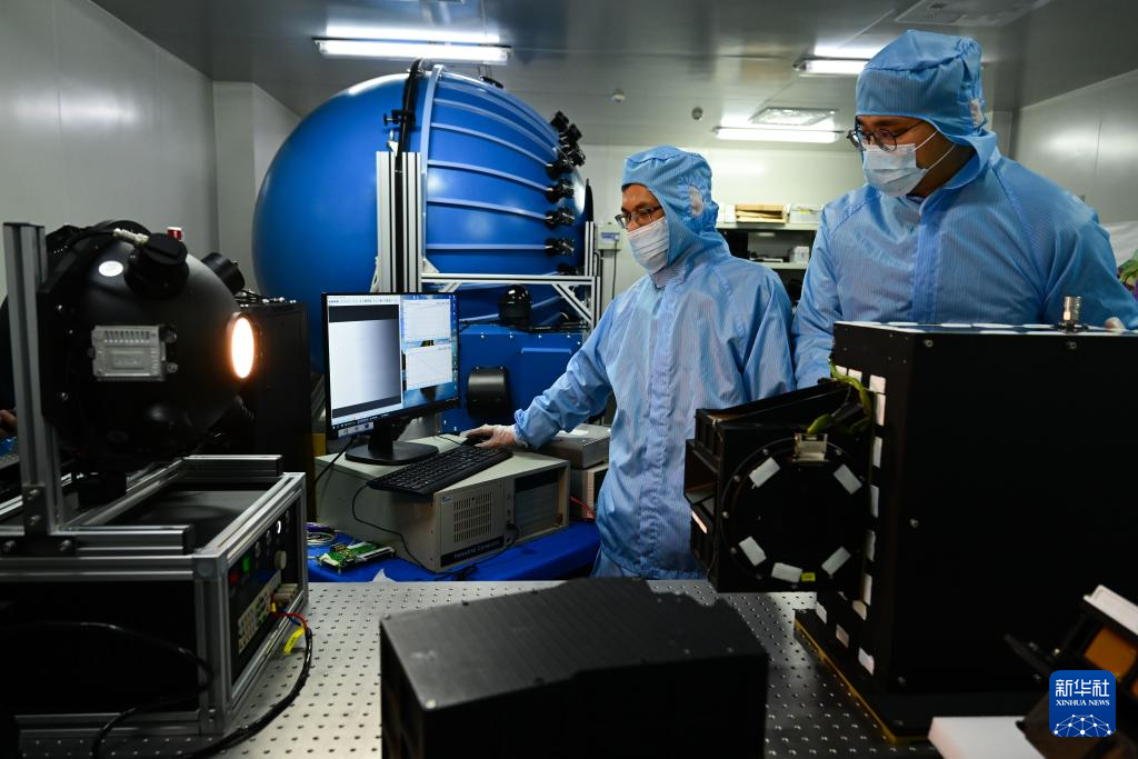 4月10日,在中国科学院合肥物质科学研究院安徽光学精密机械研究所光学遥感中心,科研人员在检查调试云和气溶胶成像仪(CAPC)。