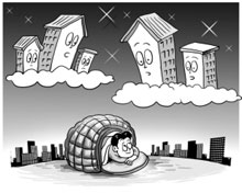 “蛋形蝸居”象征著艱辛的命運(yùn)。他們懷著創(chuàng)業(yè)的夢想來到城市,沒有原始積累,不得不白手起家。他們白天在工作崗位上揮汗如雨,夜晚拖著疲憊的身軀穿過萬家燈火的城市,很想美美的睡上一覺,卻發(fā)現(xiàn)自己一直是城市的過客,而不是歸人。但蛋形蝸居又象征著不屈的精神。沒有一只高翔的小鳥不是從蛋中孵化而出。這個(gè)群體夢想用雙手改變著命運(yùn),希冀“提著今日種種千辛萬苦,為明天換一些美滿和幸福”。他們的字典里永遠(yuǎn)寫著奮斗,奮斗,奮斗。 …[詳細(xì)]