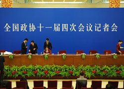 [新華網、中國政府網現場報道]2011年3月8日10時,全國政協十一屆四次會議在人民大會堂三樓大廳舉行記者會,主題是“推進基本公共服務體系建設,保障和改善民生”。全國政協委員鄭新立、宋曉梧、邵鴻、吳明江、于煉出席并回答記者的提問。新華網、中國政府網全程直播此次記者會,敬請關注! [2011-03-08 09:11:40]