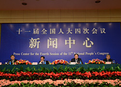 [新華網、中國政府網現場報道]2011年3月9日上午9時 ,十一屆全國人大四次會議新聞中心在梅地亞中心多功能廳舉行主題為“保障性住房建設和房地產市場調控”記者會。住房和城鄉建設部副部長齊驥、住房和城鄉建設部房地產市場監管司司長沈建忠、住房和城鄉建設部住房保障司司長馮俊出席記者會接受媒體采訪。 [2011-03-09 08:46:17]