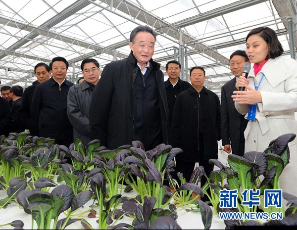 ??? 11月19日至23日,全國人大常委會委員長吳邦國在山西調研。這是11月22日,吳邦國在華通現代科技農業示范園察看農作物長勢情況。 新華社記者 李濤 攝
