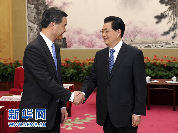 ?? 新華網(wǎng)快訊:國(guó)家主席胡錦濤21日下午在中南海會(huì)見了來(lái)京述職的香港特別行政區(qū)行政長(zhǎng)官梁振英。