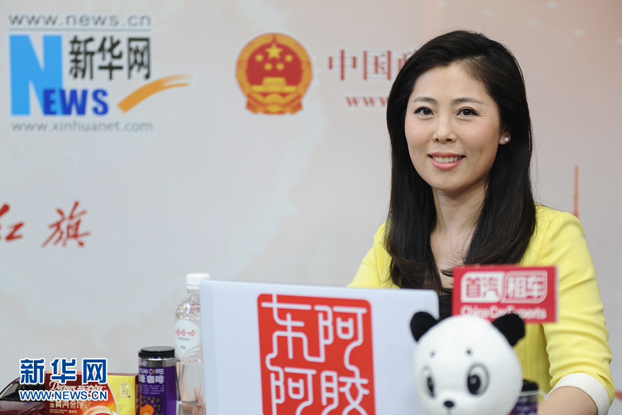 董事長兼總經理王召明做客新華網兩會訪談。圖為新華網主持人翟曉敏。新華網 賈海元 攝