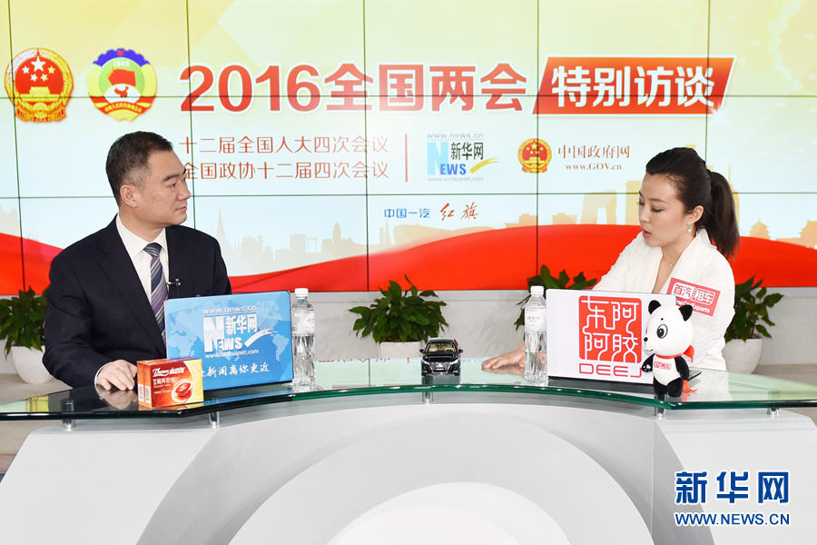 3月12日,全國人大代表,運城市市長王清憲做客新華網(wǎng)2016全國兩會特別訪談,與新華網(wǎng)網(wǎng)友在線交流。圖為王清憲在訪談現(xiàn)場。新華網(wǎng) 付宇鵬 攝
