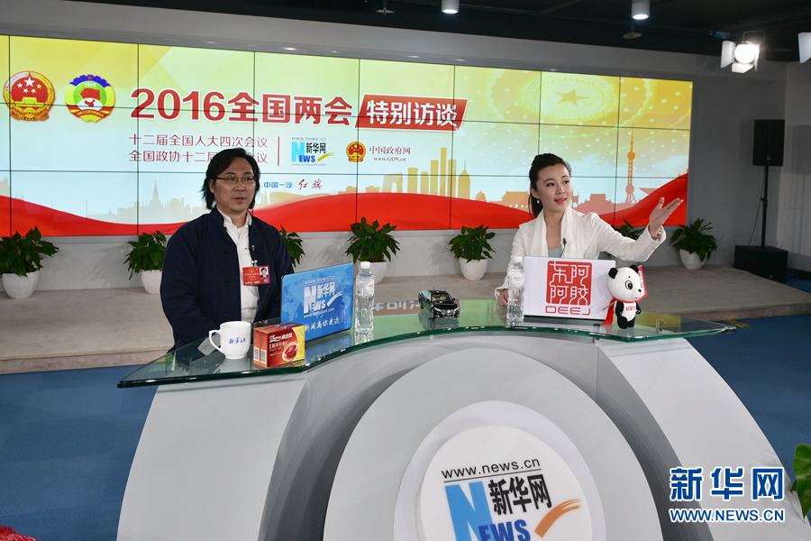 3月13日,全國人大代表、中國文聯全委、中國音樂家協會副主席,上海音樂家協會副主席、上海音樂學院副院長廖昌永做客新華網2016全國兩會特別訪談,與新華網網友在線交流。圖為廖昌永在訪談現場。新華網 郭小天 攝